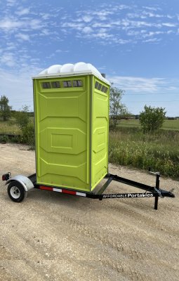 At Affordable Portables, we’ve put a lot of thought into the porta pots we offer and our standard unit is proof. Plus, we picked a bright, cheerful color (lime green!) to give our units a clean, inviting look that's easy to spot... because no one wants to walk into a porta pot that feels dark and gloomy.